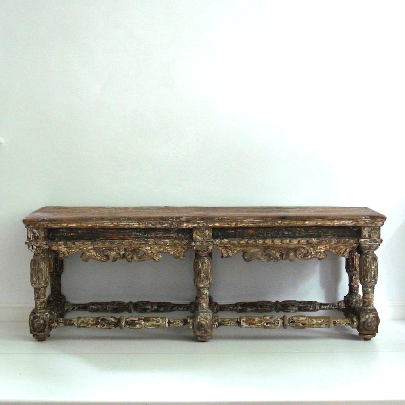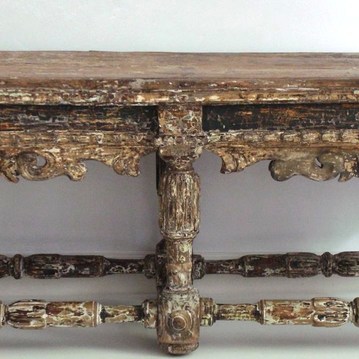Bench, Spain, with traces of the old paint, late 17th/early 18th century.