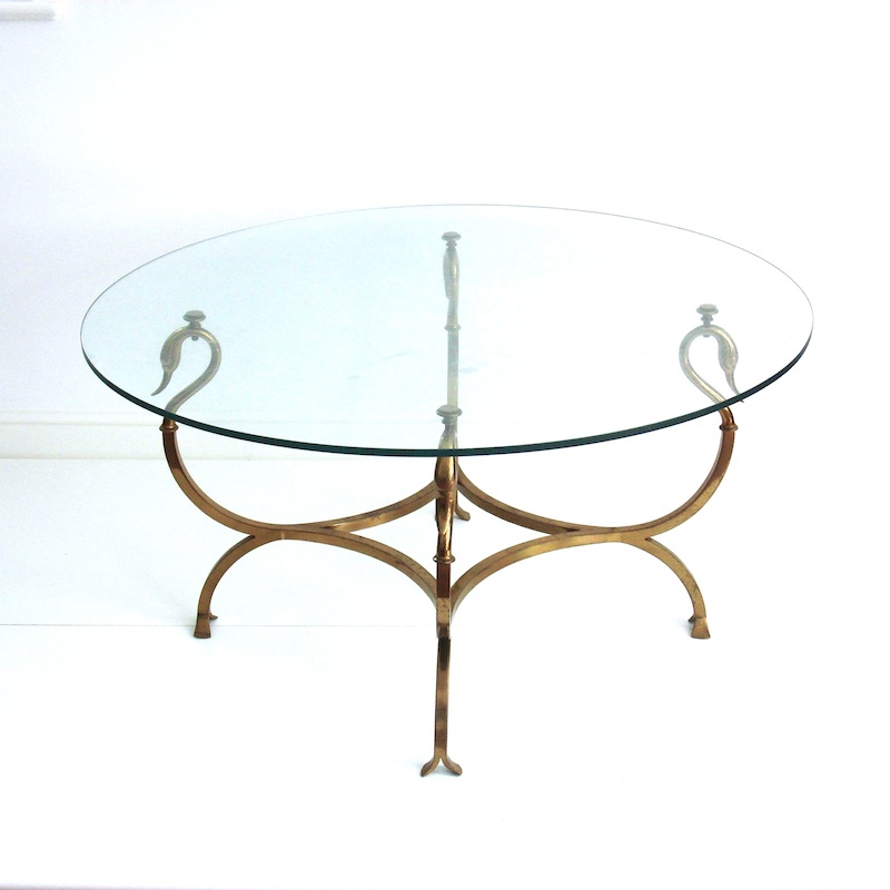 Messingtisch mit Glasplatte, 70 er Jahre.